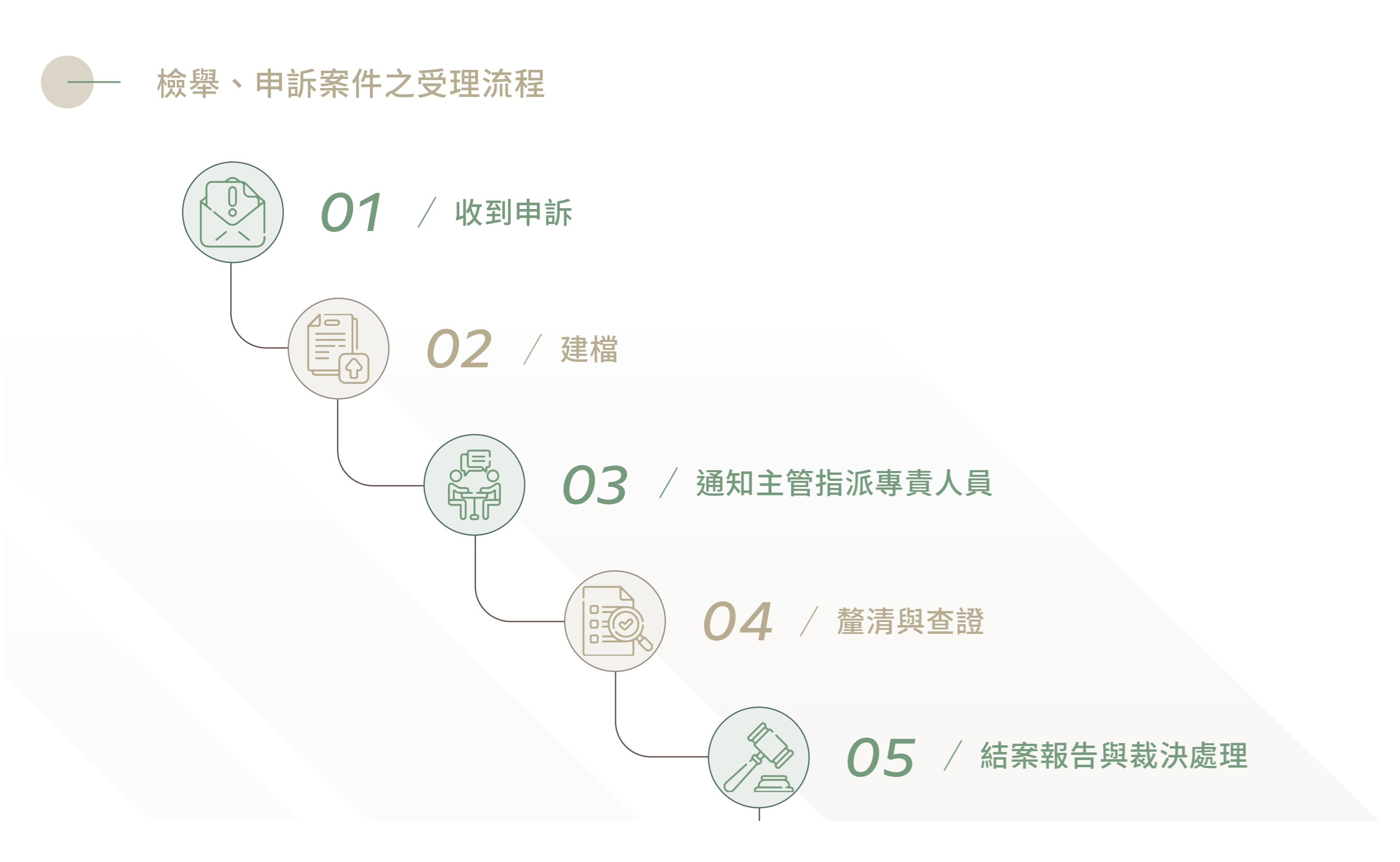本公司於2024 年共收到2 件申訴案件,其中1 件涉及商業行為、1 件涉及人權相關議題。所有案件皆已受理,並依內部程序完成調查與適當處置。其中1 件人權議題主要為協力廠商勞務管理事宜,本公司已依內部程序協助處理,並進行相關管理機制之檢討與強化。