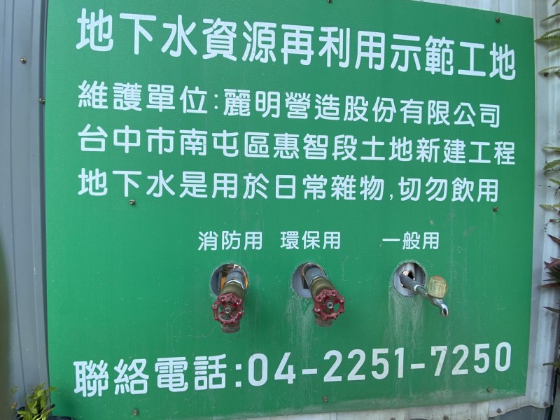 針對提議,台中市都發局長黃文彬表示「英雄所見略同」,他強調,台中市早已相中建築工地產排的地下水再利用,盤點全市到3月共有72處新建工程開挖,因適逢旱季,目前實際抽取地下水計有52處,每日抽排水量約111萬噸,已請工地業者設置水資源再利用取水口,供公部門包括建設局養護作業、環保局及消防局灑水及救災。